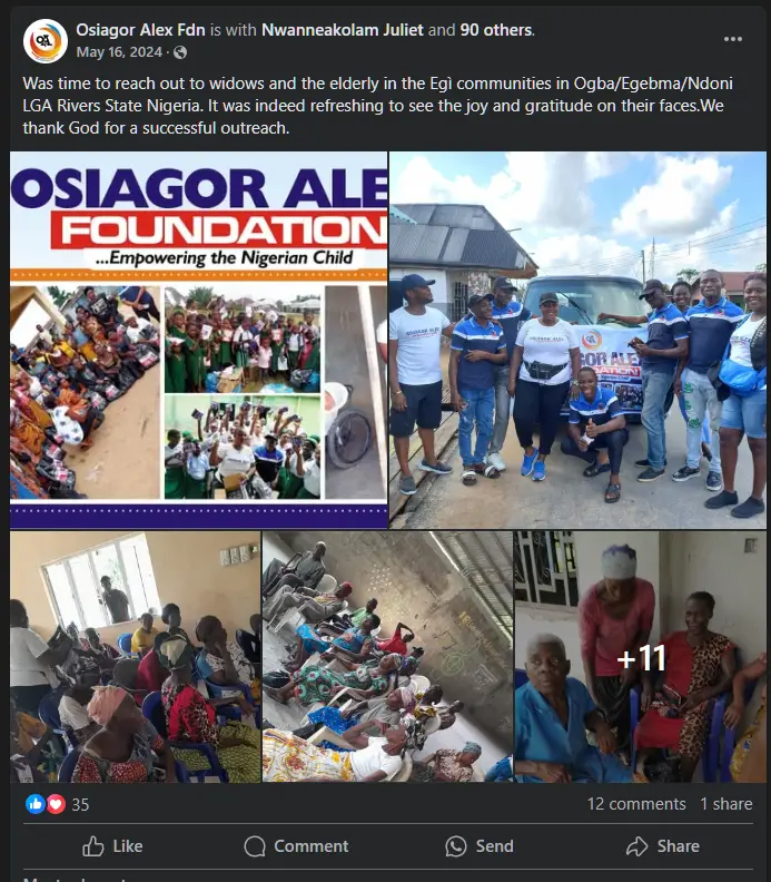 At the Osiagor Alex Foundation, our commitment to uplifting lives goes beyond words it’s a heartfelt mission. As part of our dedication to making a difference, we recently reached out to widows and the elderly in the Egi communities of Ogba/Egbema/Ndoni LGA, Rivers State, Nigeria.